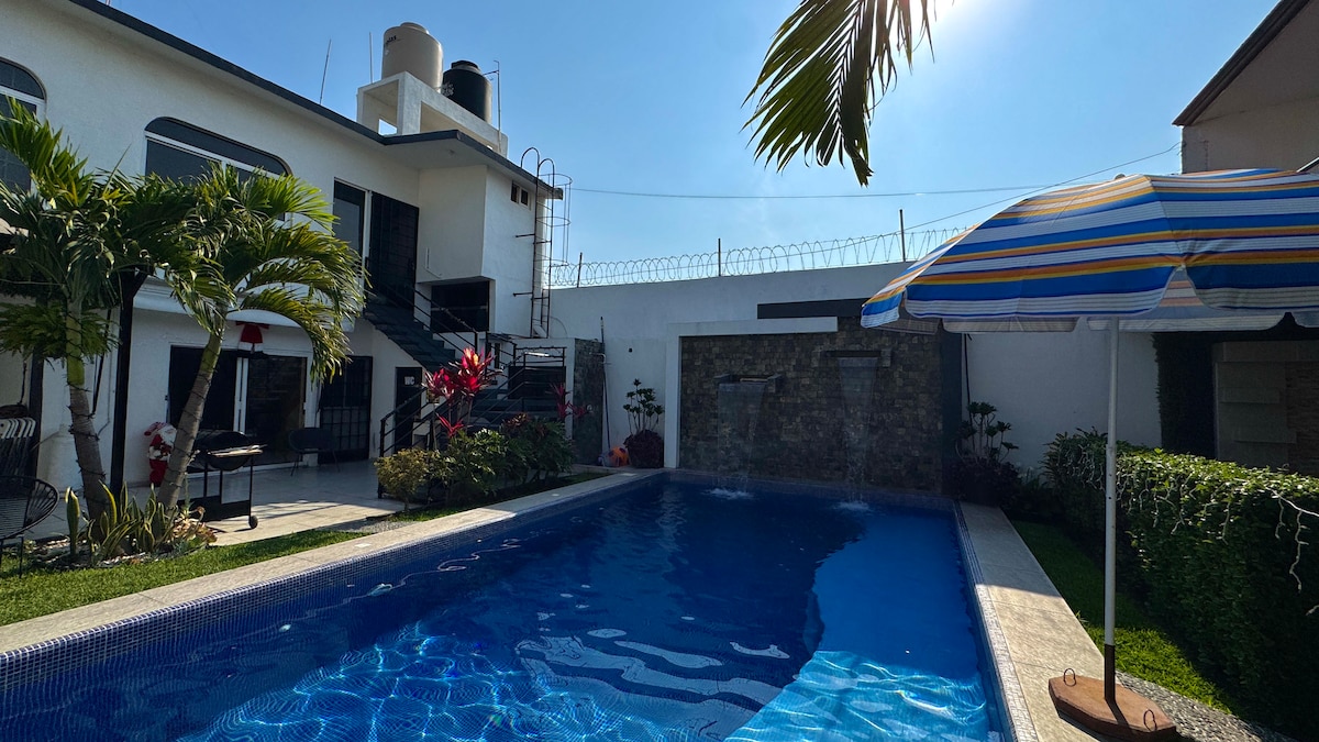 Kuernavakanın ən yaxşı məkanlarından birində möhtəşəm ev. Bu evdə sakitlikdir. Təbiətdən başqa çöldə səs-küy yoxdur. Gözəl bağı və çarpayıları olan böyük hovuz sahəsi var. Ev A/C, WiFi, TV, netflix və s. ilə tam təchiz olunub. Bura dincəlmək üçün yerdir!! Əmlakın içərisində başqa bir ev var, lakin onlar tamamilə müstəqildir və hər birinin məxfiliyinə hörmət edilir.