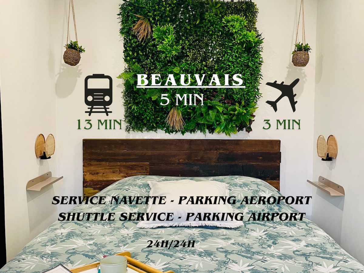 Paris-Bove hava limanından 8 dəqiqəlik (4 km) və şəhər mərkəzindən 2,5 km məsafədə yerləşən 35 kvadratmetrlik bu geniş və rahat studiyaya xoş gəlmişsiniz! Böyük 160x200 ölçülü çarpayı, tək çarpayı, tam təchiz olunmuş mətbəx və sürətli Wi-Fi bağlantısı olan masa ilə sakit bir mühitdə dincəlin. Mükəmməl dayanacaq, peşəkar və ya ailəvi qonaqlama. Birinci mərtəbə (mənzilə giriş pilləkənləri), sakit kondominium. Uşaq avadanlıqları (uşaq çarpayısı, hamam stulu, yemək stulu) və hava limanı xidməti sorğu əsasında mövcuddur.