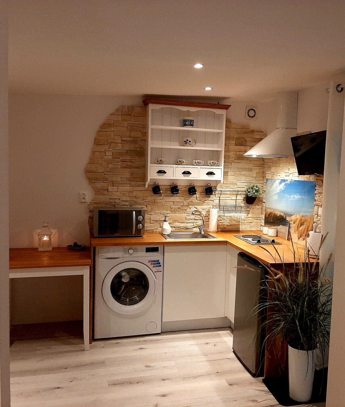 Təbiətdəki bu romantik məkanın gözəl ətrafından zövq alın. Kottec çimərlik ilə sahə arasındakı qamışdan keçməklə çimərliyə 5 dəq yaxındır. Çimərlik bütün il boyu itlər üçün açıqdır. Verandası olan evdə 4 nəfər yerləşdirilir. Qonaq otağında ikinəfərlik çarpayı və divan-çarpayı olan bir yataq otağı. Çaydan, qaz sobası, mikrodalğalı soba, soyuducu, qabyuyan maşın, qab-qacaq, gümüş qablar, fincan, kondisioner, manqal kimi bütün lazımi şeylərlə təchiz olunmuş mətbəx. İtlər qəbul olunur!