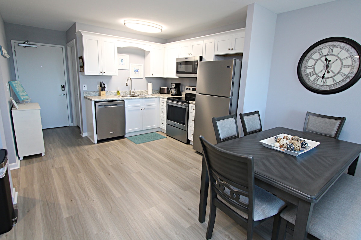 The Wharf-da bu gözəl və bütün yeni yenilənmiş kondominiumda bütün ailə ilə əylənin! 8 nəfərə qədər (1 kral, 2 kraliça və 1 kraliça divan çarpayısı), qaraj parkinqi, qazla əlaqəli manqallı balkon, çimərlik çətiri, çimərlik kresloları, paket-n-pley, uşaq boşqabları, fincan, qab-qacaq, paltaryuyan/quruducu, buz maşını, şərab soyuducusu, qəhvə qazanı VƏ kueriq! 8 nəfərlik mətbəx oturacağı olan gözəl sakit mənzil yeniləndi! Şampunlar, sabunlar, kağız məhsulları və zibil torbaları! Ən yaxşı masa və kart oyunları! Hər otaqda ağıllı televizorlar!
