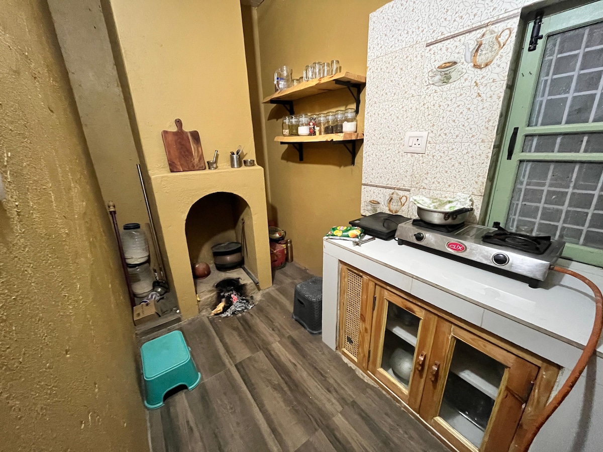 Devdar Ağacları ilə əhatə olunmuş müstəqil 1 BHK əmlakı. İnteryer təmiz Devdar taxtası ilə hazırlanıb. Burada qapalı yanğın yeri və mətbəx üçün bütün imkanlar var - Mikrodalğalı soba, Soyuducu, Su Təmizləyicisi, Elektrik Çaydan, Toster, Kəsmə, Qaz, Mətbəx Utensilləri, Mikser Taşlama. Çimmək üçün qaynar su bulağı, ağıllı televizor, Wi-Fi və ehtiyat elektrik enerjisi var. Təmizlik haqqı yoxdur. Giriş vaxtı eyni gündə çıxış edib-etməməsindən asılı olaraq uyğunlaşdırıla bilər. Şənlik alovları ödənişlidir