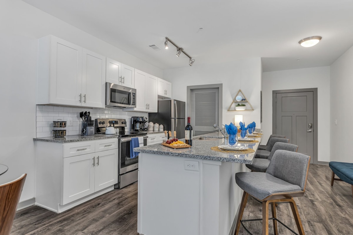 Beautiful Downtown Riverwalk Oasis THE CONDO This condo is a new downtown oasis!!! Designed and furnished to give our guests a modern and luxurious experience while also capturing the comforting feeling you can only get from being in a family home. Everything you could want downtown Chattanooga is at your finger tips. The Aquarium, The River Walk, Restaurants, Bars, Coolidge Park and much much more are within minutes reach. You will also have access to our Pool, Gym and Clubhouse!!!