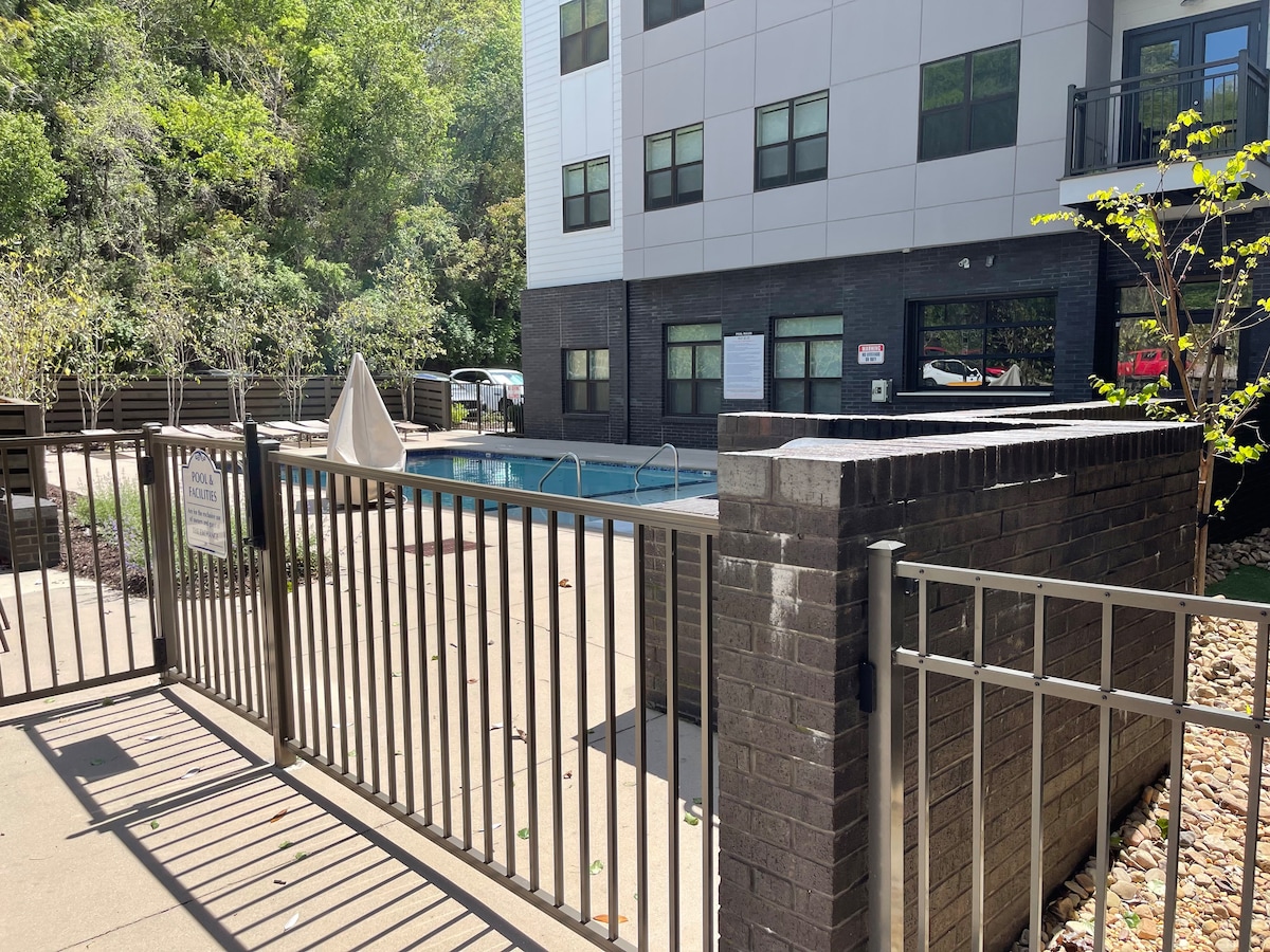 Enjoy our modern, well-equipped 2 bedroom, 2 bathroom condo. Enjoy easy access to everything downtown Chattanooga has to offer! Just across the street from the Tennessee Riverwalk. Walk to Southern Belle Riverboat (12 min), Ironman staging (11 min), Playground (13 min), Aquarium & IMAX (19 min< 1 mile) and nearby: Creative Discovery Children's Museum, Restaurants, more. There are two restaurants across the street (Parkway Pourhouse and Scottie's on the River).