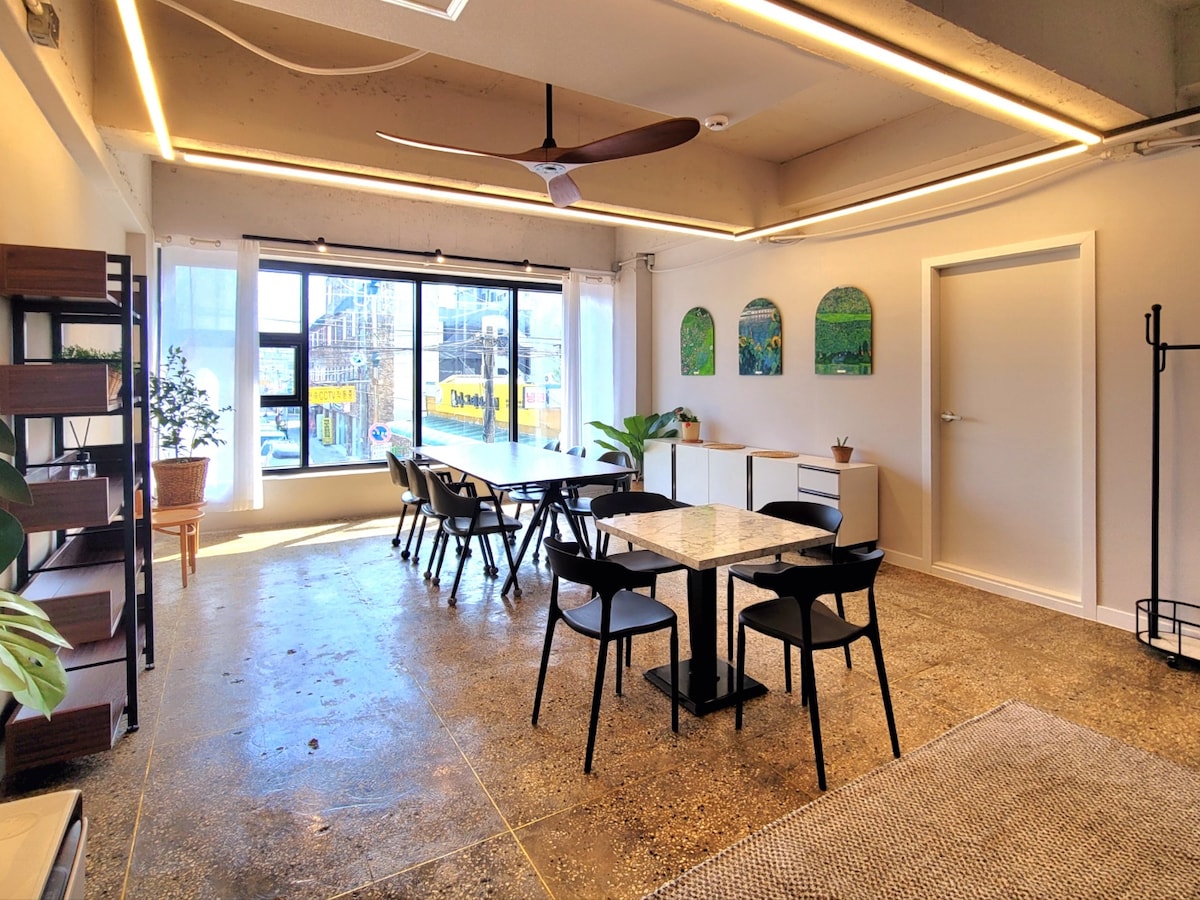 Salam, bu, 1 nömrəli istirahətdir.☺️ Bu geniş və sakit məkanda narahatlığınızı unudun.🍀 Bu evdə dəniz, Spacewalk və Jukdo Bazarı kimi populyar turistik yerlərə yaxın həm əlçatanlıq, həm də üslub var. Bura sevdikləriniz, sevgililəriniz və dostlarınızla xoşbəxt məkandan💛 zövq ala biləcəyiniz xüsusi məkandır. Qonaqlarımızın rahat istirahət edə bilməsi üçün təmizliyi əsas prioritet hesab 💛edirik. Kafelər, rahat mağazalar və Mulhoe restoranları 💛qonaqlama yerindən 10 dəqiqəlik məsafədədir, odur ki, onlardan rahat istifadə edə bilərsiniz. Uşaqlar darvazanın qarşısındakı kiçik parkda istədikləri qədər qaça və oynaya 💛bilərlər. ✅ Birinci mərtəbədə bütün evin eksklüziv istifadəsi Çimərlikdən piyada ✅ 7 dəqiqə, piyada 10 dəqiqə, maşınla 2 dəqiqə, Spacewalk parkinq yeri ✅ Yeongildae Maritime Nugak, Jukdo Bazarı, Mulhoe Restoranı, Kafe Küçəsi ✅ Pulsuz baqaj saxlama yeri ✅ İnsanların sayına uyğun olaraq bir dəfə təmin edilən qarşılama yeməyi (fincan əriştəsi) İşgüzar səyahətçilər qəbul edilə bilər ~ Bizimlə əlaqə saxlayın♡