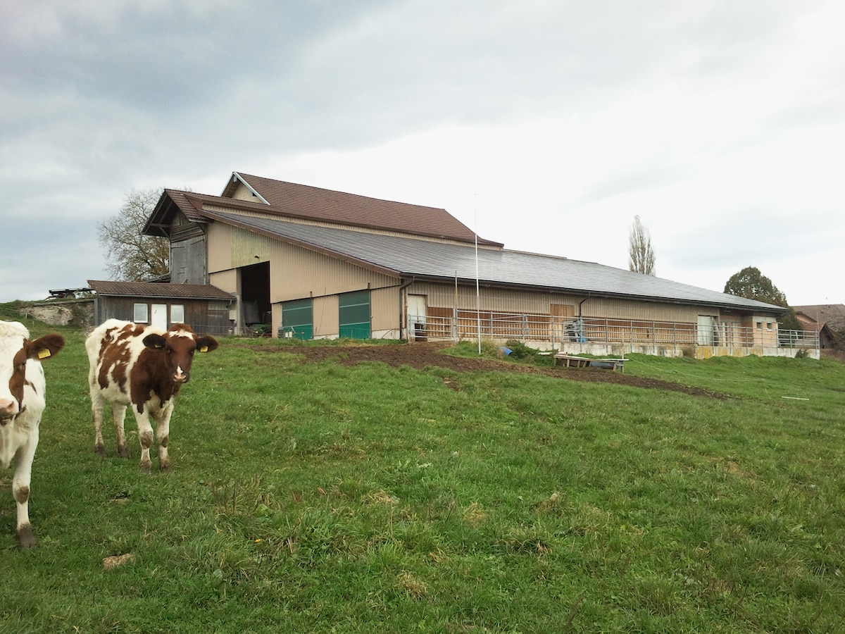 Özünüzü rahat hiss edin və rahat 2 otaqlı mənzildən zövq alın. Bu, 1-ci mərtəbədədir, yataq sahəsi pilləkən vasitəsilə çardağa aparır. Mənzil Laupen və Murten yaxınlığındakı kənddədir. Kiçik bir ferma işlədirik. Qoyunlarla yanaşı, göyərçinlər, dovşanlar, toyuqlar və qaz da saxlanılır. Arıçılığımız da var. Postbus dayanacağı evin yanındadır. Gümmenen qatar stansiyasına avtobusla və ya piyada 10 dəqiqəyə asanlıqla getmək mümkündür.