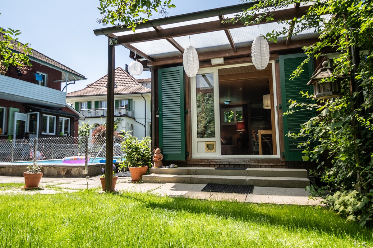 onları minimal şəkildə sınamaq istəyən insanlar üçün evcik. təkərlər üzərində taxta konstruksiya, kompost-separation-toilette (su sürtünmə əvəzinə taxta zolaq) və duş kabinəsi və kiçik mətbəx. təbiət qoynunda, hələ də bern üzərində gözəl mənzərələri olan şəhərə çox yaxındır. ƏLAVƏ XİDMƏTLƏR: YATAQ DƏSTİ öz yataq dəstinizi gətirin, yoxsa təmin edirik? birdəfəlik şf xərcləri. 10.- TƏMİZLİK: özünüzü təmizləyin və ya çf. 30.? PARKİNQ: hər bron edilmiş gecə şf. 10.-