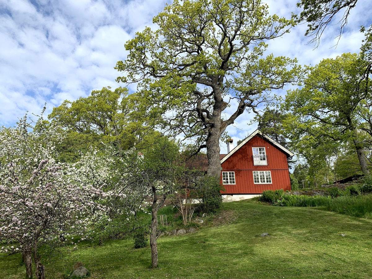Charming 130-year-old cottage (90 m²) with a modern yet cosy feel. Two renowned spas (Yasuragi & Skepparholmen) within walking distance. Bottom floor: kitchen and dining area with classic wood stove, living room and bathroom. Your own garden and spacious wooden deck—perfect for sunbathing or BBQs. Set in a beautiful area with a crystal-clear lake for bathing just 200 m away, with a nature reserve surrounding it. Sea dock ~700 m. 30 minutes to Stockholm by Waxholm boat, bus or car.