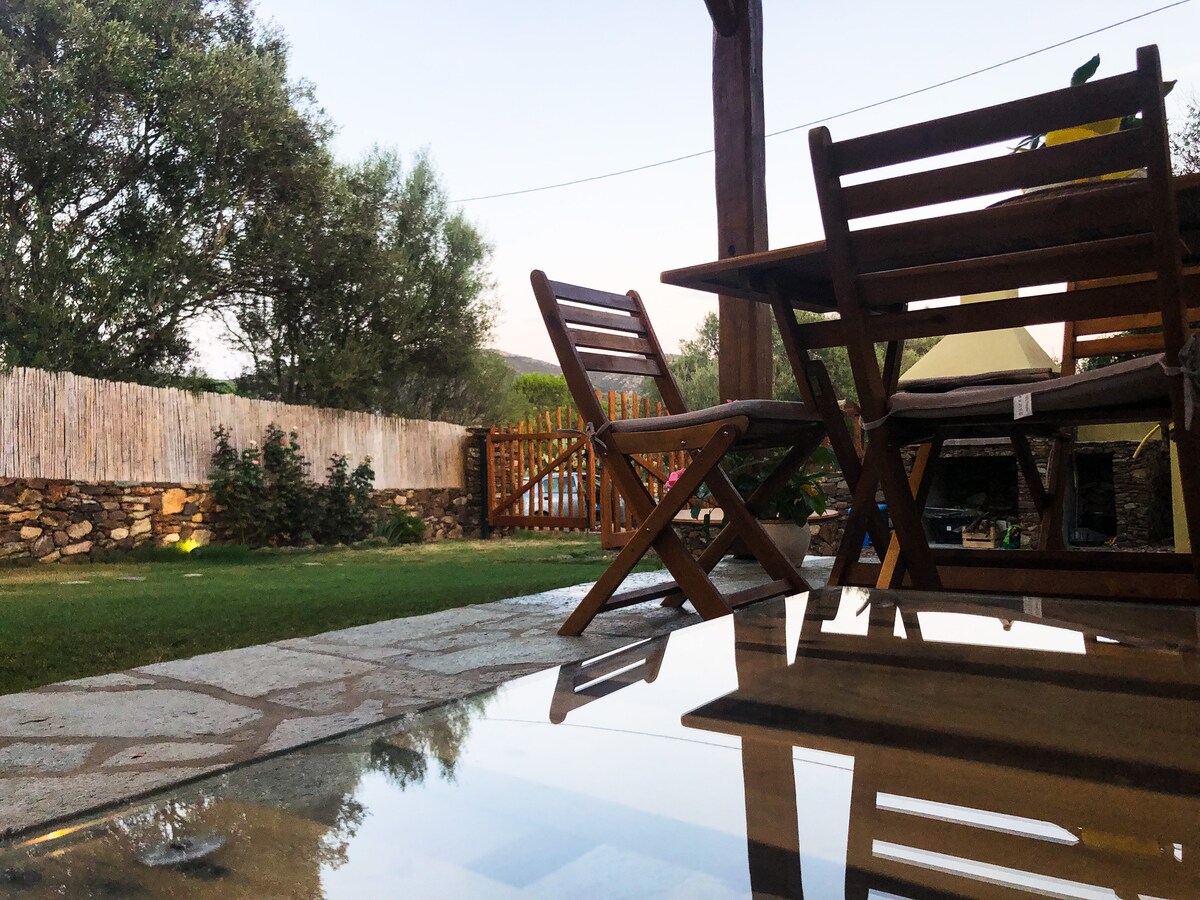 Sakit və sakit kənd yerində yaşıllıqlarla əhatə olunmuş, sahilə yaxınlığı "Tuerredda" da daxil olmaqla, cənub sahilinin gözəl çimərliklərini 5 dəq. və "Su Judeu" 15 dəq. avtomobil ilə araşdırmaq üçün əla bir baza yaradır. Bu yaxınlarda tikilmiş və bütün komfortlarla təchiz edilmiş, məxfiliyə və məxfiliyə zəmanət verən rahat qonaqlama axtaranlar üçün idealdır. Avtomobil ilə yaxınlıqdakı yerlər: - Damüstü, 30 dəq. qərb; - Çia və Pula təxminən 15-20 dəqiqə şərqdə.