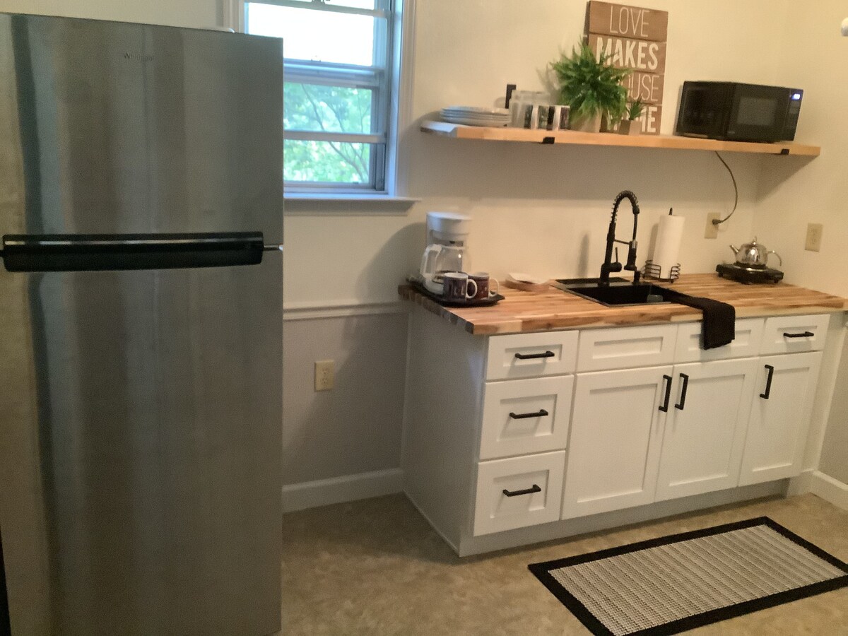 Meşəlikdə yerləşən evimiz istənilən ailə, cütlük və ya kiçik qrup üçün mükəmməl istirahət yeridir. Demək olar ki, hər bir qrup üçün kifayət qədər yataq və digər yataq yerləri daxil etmişik. Böyük yaşayış və yemək məkanlarımız göldə və ya antikvarda əyləncəli bir gündən sonra əsmək üçün mükəmməldir. Arxa həyətdəki od çuxuru ətrafında həyat daha da yavaşlayır. Ümid edirik ki, evimizin həm içindən, həm də çölündən zövq alacaqsınız və sizi Qrinbiyerdə yemək, alış-veriş və oyun zamanı vaxt keçirməyə dəvət edirik.