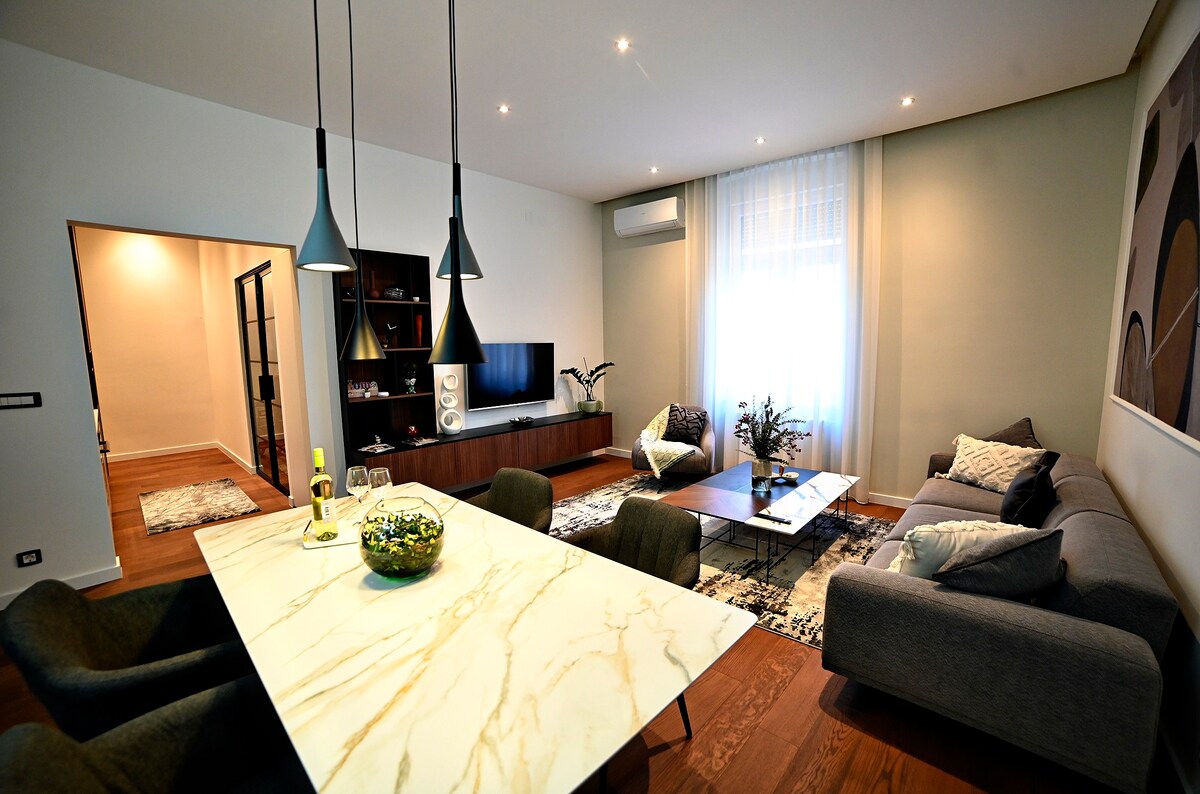BRAND new elegant apartment in the CITY CENTER less then 10 min walking distance from the main square and train station. Situated in a peaceful backyard on the main street so you can enjoy quiet nights. There is one bedroom with queen size bed, living room with TV + NETFLIX and pull out sofa (queen size), bathroom with toilette and spacious walk in shower separated. All furniture and appliances are brand new. FREE tea&coffee,FREE towels.