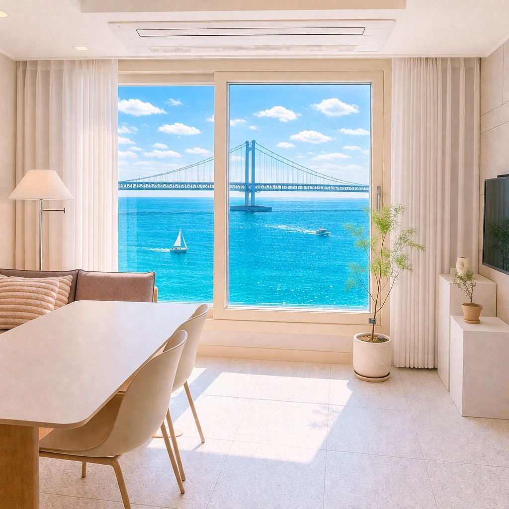 # Tam Okean Mənzərəsi # Yeni # 2 Yataq Otağı + Qonaq Otağı, 3 Çarpayı # Qvanqan Körpüsünün Tam Görünüşü # Pulsuz Parkinq # 20 Pyeong # Ən Yaxşı Təmizlik # Mimem
