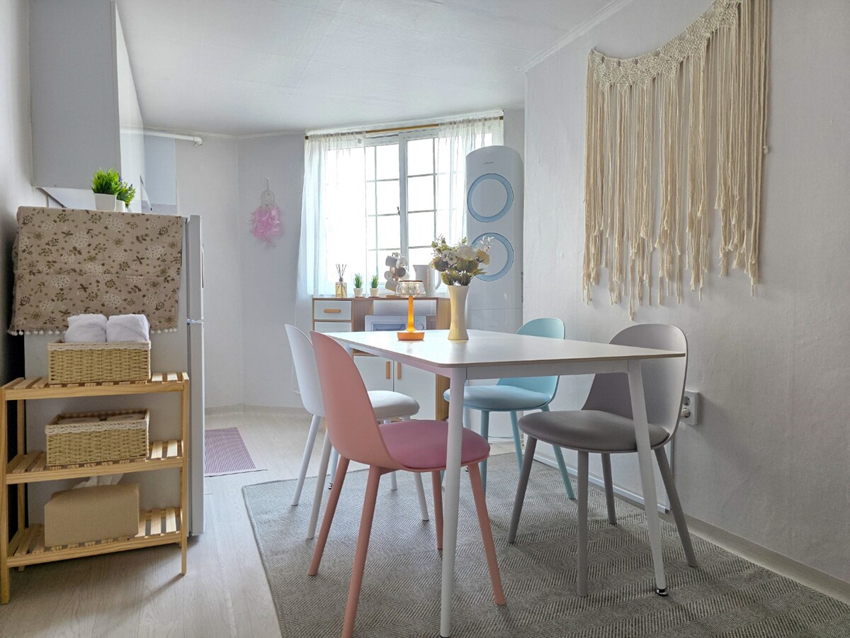 🌱Böyük Açılış Tədbirinin Nəzərdən Keçirilməsi🌱 2026-cı ilin mart ayında açılan tam yeni elan, Açıq tədbir keçiririk. 🩵 1. Gözəl rəy yazsanız, Qonaqlama günündə park xərclərini biz qarşılayacağıq.🩵 (Bron etdiyiniz zaman iştirak edib-etməyəcəyinizi bizə bildirin!) 2.❤️🔥Ev sahibinin tövsiyə etdiyi restoran və kafelər siyahısına keçid təmin edilir❤️🔥 ✨ Haengnidan-gil Əsas Mərkəzi 1 saniyə məsafədə Ohara Lounge ✨ 🌞Oh (yay ortası) Salonuna xoş gəlmisiniz! A (günorta) + S (yay) “Yay ortası” demək olan Ohara Salonu, Gündəlik gərgin həyatdan bir qədər uzaqlaşın və isti günəş işığının altında Rahat şəkildə dincələ biləcəyiniz bir məkan yaratmışıq. Qonaqlama yeri Haengnidan-gil Mərkəzindən cəmi 1 saniyə məsafədə yerləşir. Əsas küçədə yerləşir, gecə vaxtı da təhlükəsizlik yaxşı təmin edilir Bütün mərtəbə bütövlükdə sizin istifadəsinə veriləcək. 🏡 Yüksək mərtəbədə yerləşən geniş və rahat məkan Cütlüklər, dostlar və digər qruplar üçün mükəmməldir Həmçinin ailə ilə qrup səfərləri üçün Rahat qalacaqsınız.