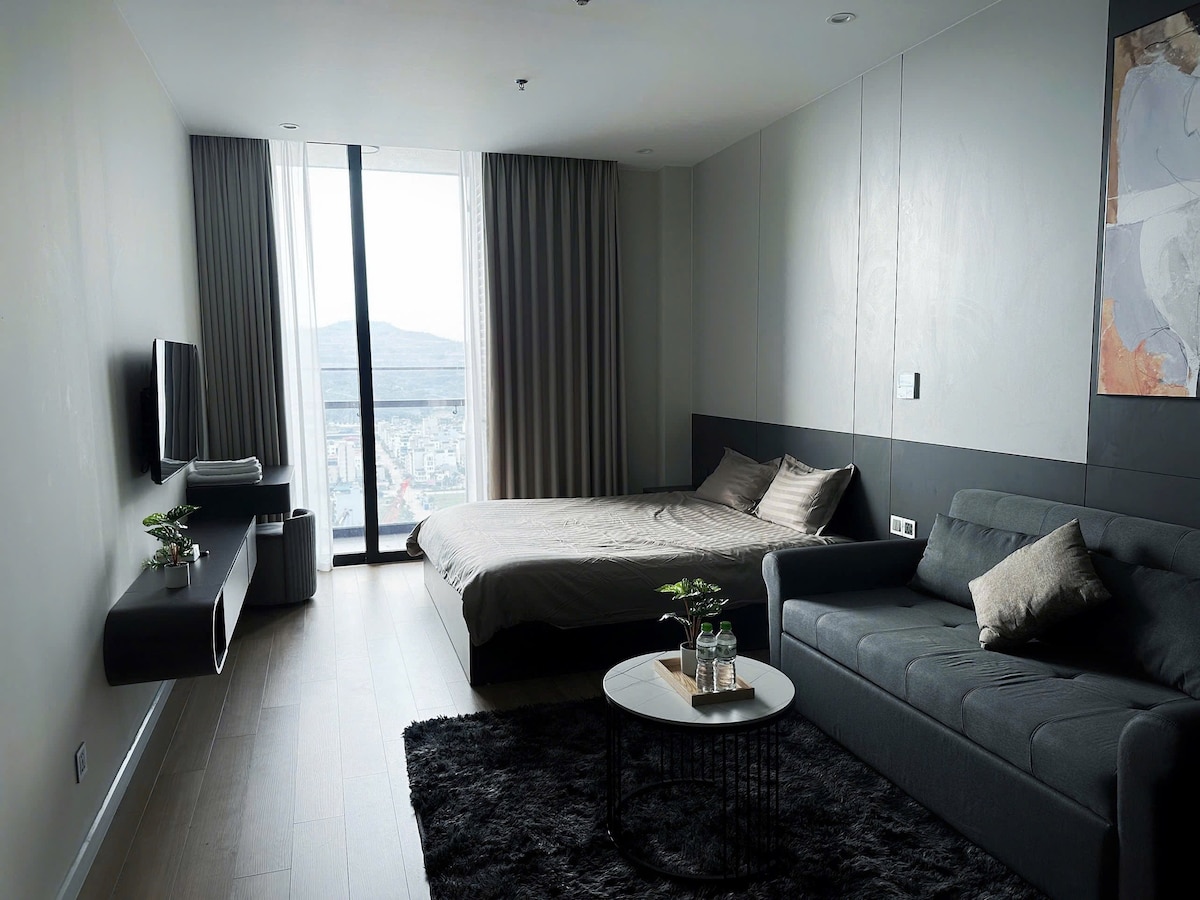 Luxury apartment à la carte Ha Long - the highest 41 floor building in Ha Long, the apartment on the 32nd floor has 2 bedrooms and a living room with glass ocean views, at the foot of the building is a white sand beach, 5-stars standard room facilities are fragrant and clean, suitable for families with young children or groups of friends who want to have a common space when traveling but still need a private, closed bedroom, especially when traveling. Watch the sea 24/24 even lying on your bed