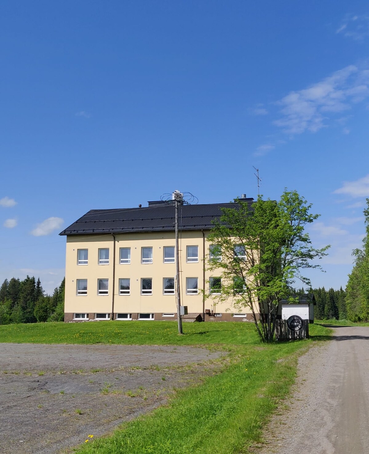 Bu sevimli studiya bir gecəlik dayanacaq və ya daha uzunmüddətli qonaqlama üçün rahat şərait təmin edir. Otaqda su və qəhvə maşını və mikrodalğalı soba olan quru mətbəx var. Aşağı mərtəbədə daha yaxşı avadanlığı olan şərikli mətbəx də var. Otaqda ayrıca tualet və duş var və zirzəmi saunası qurğuları da istifadə olunur. Meşə cığırı birbaşa həyətdən çıxır və yolun digər tərəfində təmiz su Pyhäjärvi var. Binada Təbəssüm Yoqa dərsləri və səs bataqlıqları keçirilir.