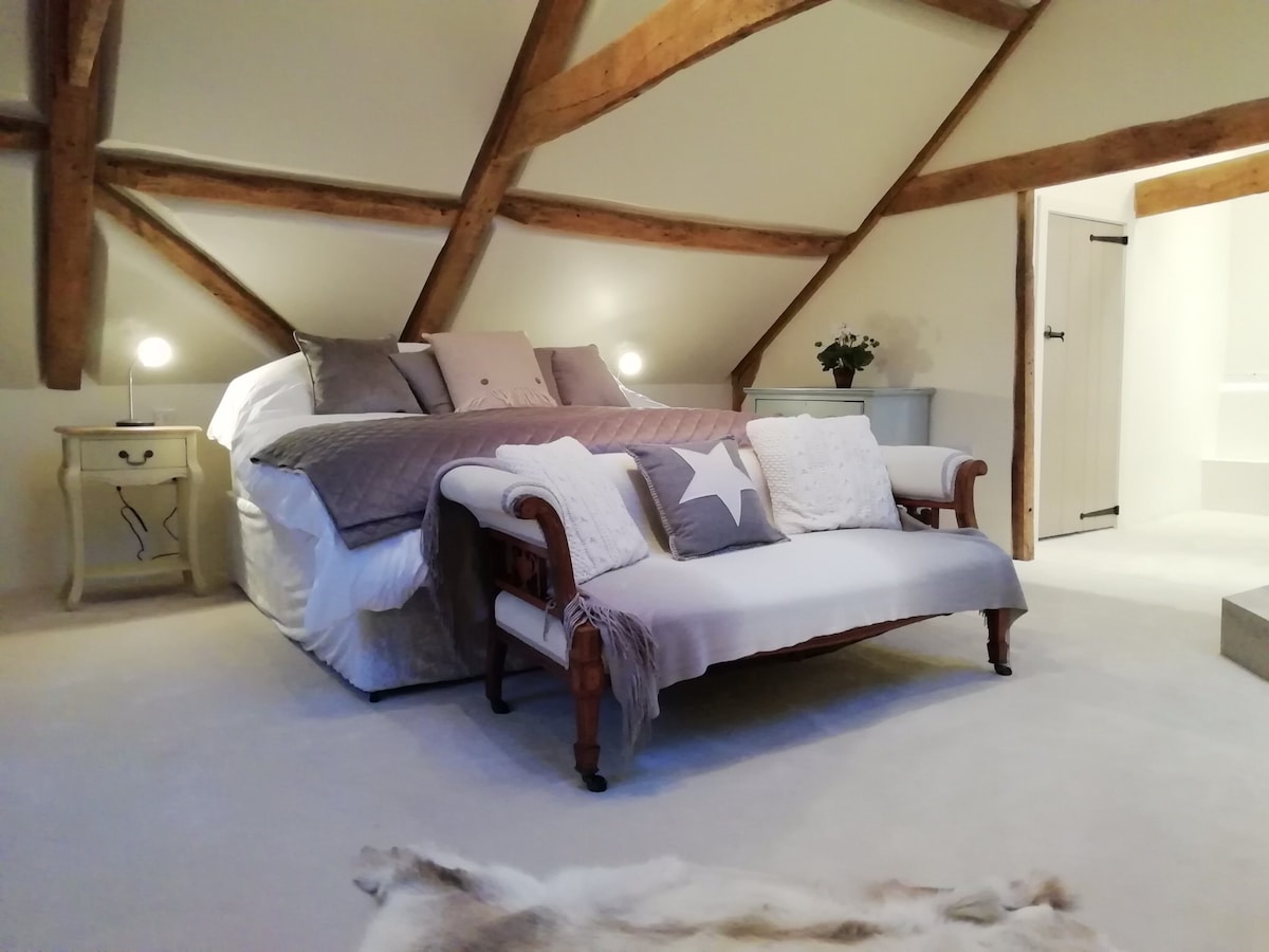SELF-CONTAINED and BRAND NEW (Oct 2020) studio annex (attached to stunning home) with OWN SEPARATE ENTRANCE. Imagine the comfort and style of a 5* boutique hotel, with the cosiness and relaxed feel of home... FEAT: *ENHANCED CLEANING *Brand new luxury KING SIZE bed *Stunning luxury ensuite w/ walk-in dbl shower *Enormous freestanding bath *Underfloor heating *Wifi *55" TV *Complimentary Netflix *Desk *Hotel-style "kitchenette" w/ microwave; mini fridge; kettle, teas & Nespresso *Table & chairs