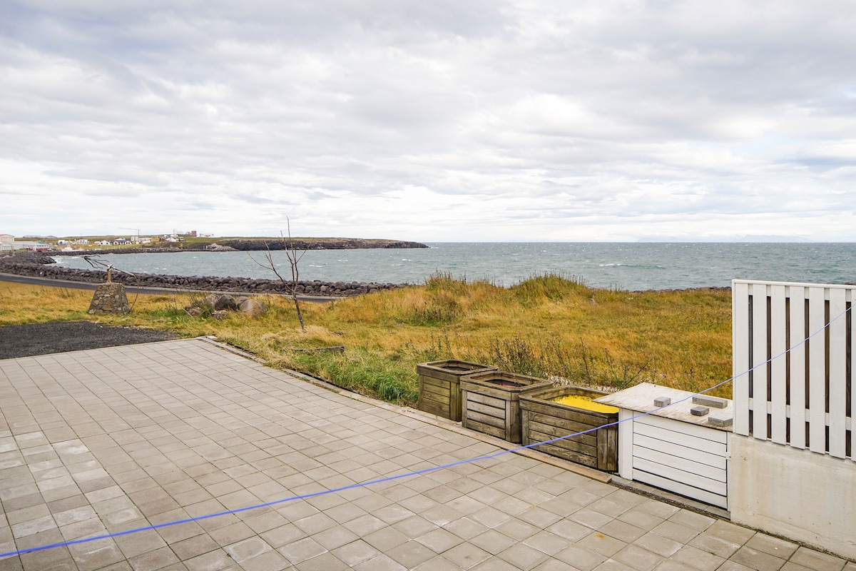 160x200 ölçüdə iki yataq otaqlı mənzil. 5 qonaq üçün əlavə çarpayı və sorğu əsasında uşaq üçün beşik təmin edirik. Burada tam təchiz olunmuş mətbəx və zəruri tualet ləvazimatları və dəsmalları olan hamam otağı, eləcə də qonaq otağı da var. Okeana baxan sakit bir yerdir. Mayaka piyada 10 dəqiqəlik məsafədədir. Hava limanına maşınla 12 dəqiqəlik məsafədədir. İslandiyada sərgüzəştinizi başlamaq və ya bitirmək üçün əla yerlər.