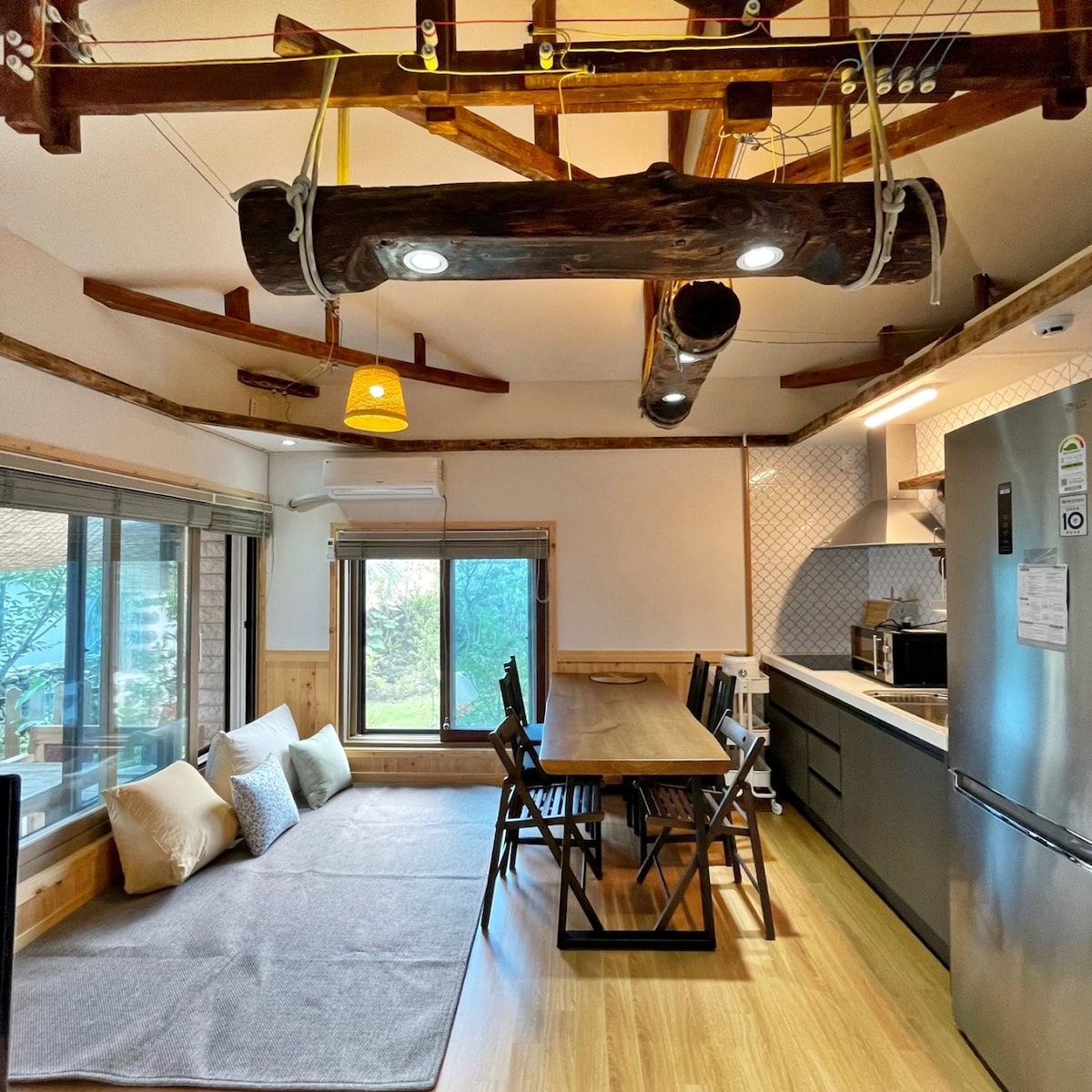 Tucked beneath the majestic Hallasan Mountain, Stay NangNang offers a peaceful retreat surrounded by nature. Enjoy stunning views of a tangerine orchard and cherry blossom-lined paths, with a calming bamboo forest as your backdrop. Wake up to the gentle rustling of bamboo leaves and the melodic songs of Jeju’s birds, experiencing the island’s charm in every season. This private space is perfect for those seeking tranquility, whether for a month-long stay or a family getaway.