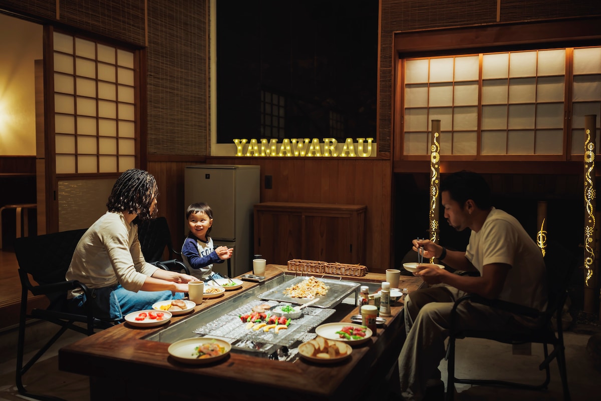 『山笑ふ』森に包まれる大人の隠れ家 -囲炉裏BBQを満喫する山小屋-