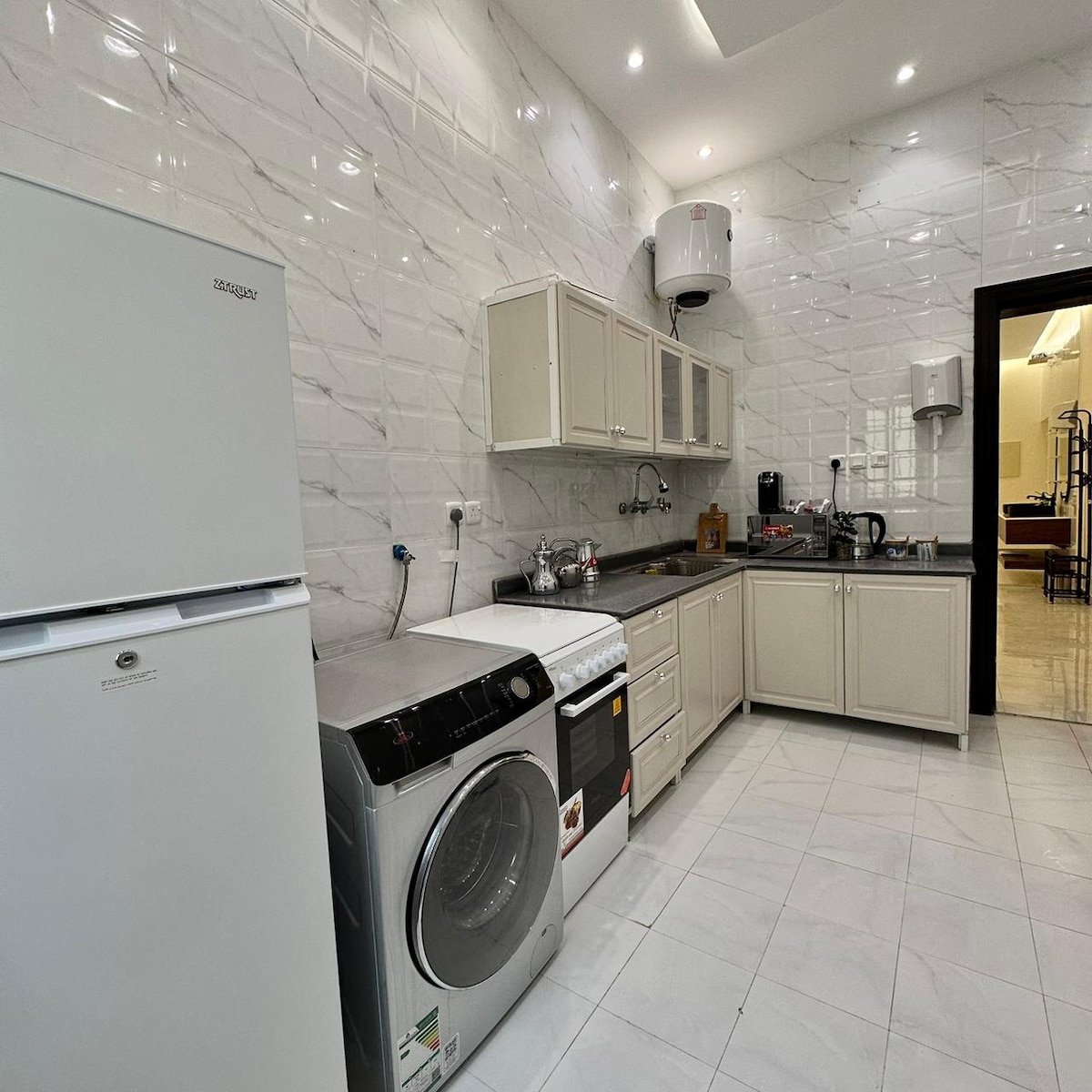 Ağıllı girişi və restoran və kafelərə (Starbucks, Loft, Pic..) yaxın fərqli mövqeyi olan geniş və dəbli siqaret çəkməyən mənzil Mənzildə istirahət otağı, yemək zalı, iki əsas yataq otağı, mətbəx və sakit açıq veranda var. Mətbəx ehtiyaclarınızı qarşılamaq üçün zərif dizayn edilib və soba, soyuducu, yemək qabları və qəhvə guşəsi ilə təchiz olunub. Qəhvə küncünə qəhvə maşını və ərəb qəhvəsi də daxil olmaqla bir çox qəhvə və çay seçimi daxildir. Qonaq otağında bütün idman və əyləncə platformaları olan 60 düymlük ağıllı televizor var Witness Vip Sports, Netflix