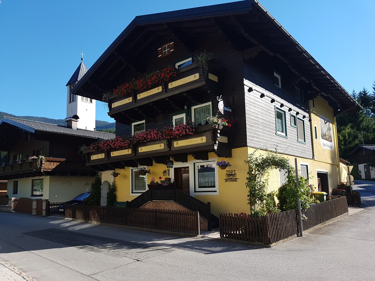 Ənənəvi, rahat mehmanxanamızda 14 otaq var və Abtenau şəhərinin düz mərkəzindədir. Restoran və mağazalar gəzinti məsafəsindədir. Məndən qonaq kartı alacaqsınız, buna görə də ictimai nəqliyyatdan pulsuz istifadə edə bilərsiniz. Abtenau yürüyüş etmək, dağda velosiped sürmək və ya sadəcə gəzintiyə çıxmaq üçün əla yerdir. Burada şəlalələr, gözəl alp otlaqları, xüsusilə uşaqlar üçün açıq havada möhtəşəm üzgüçülük hovuzu, mini-qolf, yayda tütünqurutma qaçışı var. Səhər yeməyi - bir nəfər üçün 15 avro.