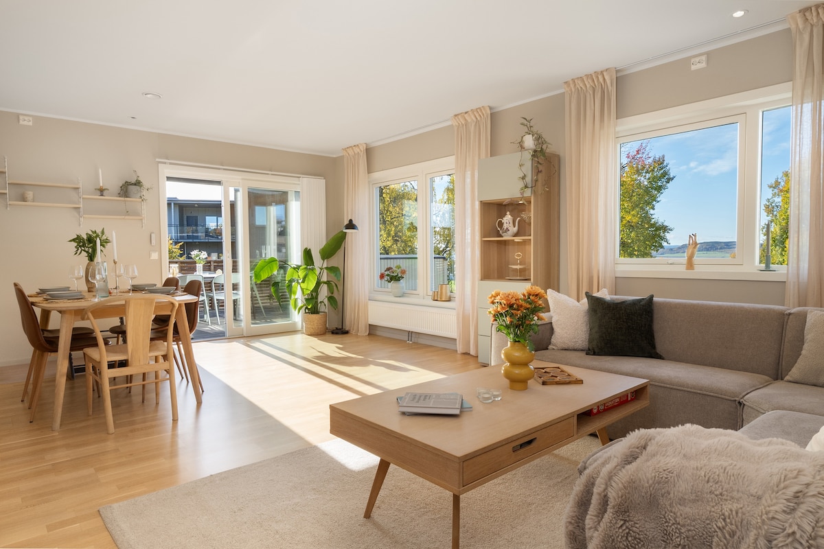 Bo moderne, romslig, stille og familievennlig på 153 kvm i et totalrenovert rekkehus, med 3 soverom, 2 bad og kjellerstue med treningsrom/tv. Butikker, treningsfasiliteter, buss og stier rett ved! Gratis parkering. Stua har en deilig sofa, og dør ut til koselig terrasse. Du har wifi og Netflix. Tre gode 180-senger. Det forventes stillhet mellom 23-07. Røyking forbudt. Vi leier ut til par/familier (gjerne med barn!) over 20 år, maks 6 pers. Rene håndklær og sengetøy følger med. Velkommen