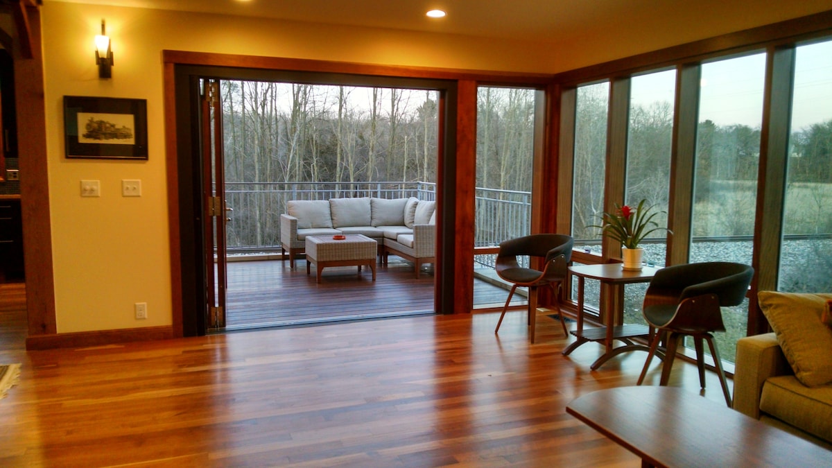 Huron çayının sahilində unikal birotaqlı kottec. Bir sıra mağazaları, restoranları, çöldə yeməkləri, konsertləri və festivalları ilə tanınan Milfordun piyada yönümlü kəndinə yarım mil məsafədədir. Tək, cüt və ya kiçik ailə üçün mükəmməl banqalo. Yaşayış sahəsində ikinəfərlik divan çarpayı var. Bir çox unikal xüsusiyyətləri olan evcik. Dincəlmək və ya zefirləri qovmaq üçün çayın kənarında od çuxuru və yemək verandasında qaz manqalı. 15 may - 15 oktyabr tarixlərində iki oturacaqlı kayak mövcuddur.