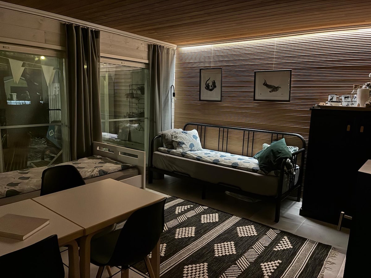 Ərazidə əsl nadirlik - sakit parkın yanında saunası və cakuzisi olan, şəhərə yaxşı nəqliyyat bağlantıları olan təmiz və yaxşı təchiz olunmuş kottec! Allergiyası olan insanlar üçün uyğundur. Nokia Arenadan 1,8 mil (3 km) aralı. Maşınla 8 dəq, 10 nömrəli avtobusla 10 dəq, piyada 40 dəq. ❗️ Şənliklər və ya bənzər tədbirlər üçün yer axtarırsınızsa və ya qonaqları dəvət etməyi planlaşdırırsınızsa, təəssüf ki, kottecimiz sizin üçün uyğun yer deyil. Kottec sakit yaşayış yerində yerləşir.