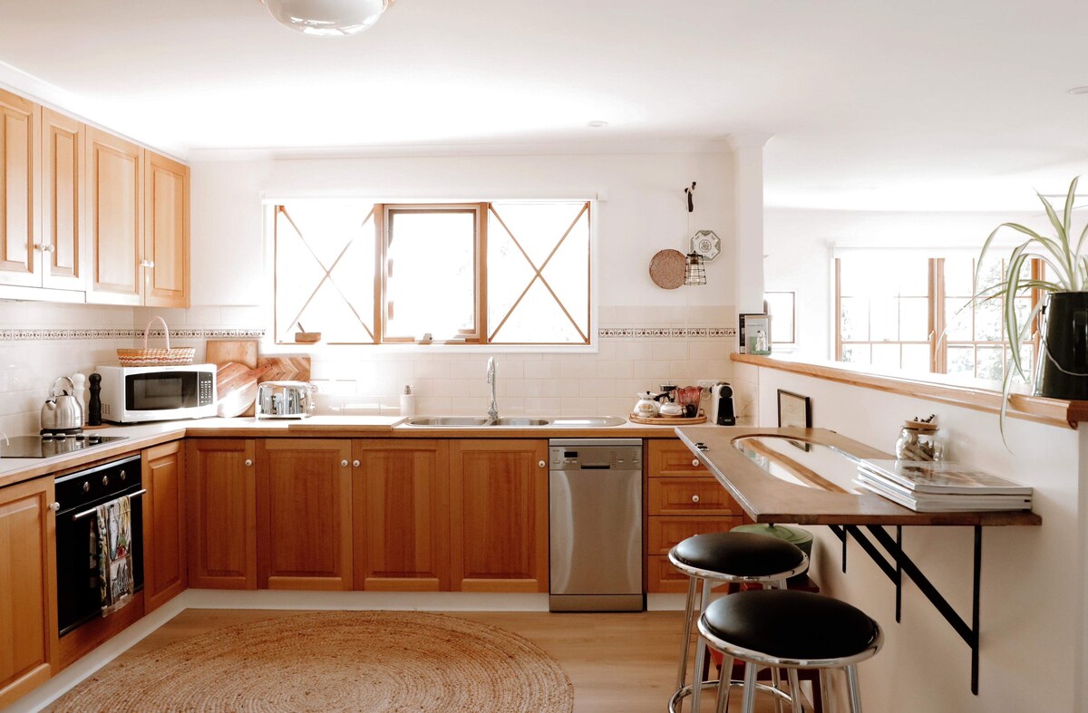 Mənzilin tağlı tavanları və taxta döşəmələri, qabyuyan maşını olan tam mətbəxi var. Qışda odun yeri rahat saxlayır. Yayda balkon səhər yeməyi, çoxsaylı yerli quşları seyr etmək üçün sevimli yerdir. Bir neçə dəqiqəlik məsafədə Geelonq, Deakin Uni və Geelonqun 3 böyük xəstəxanasına çatacaqsınız. Böyük Okean Yolu da daxil olmaqla gözəl çimərlikləri idarə etmək asandır. Binanı davamlı saxlamaq üçün günəş enerjisi, isti su və elektrik və yağış çənləri var.