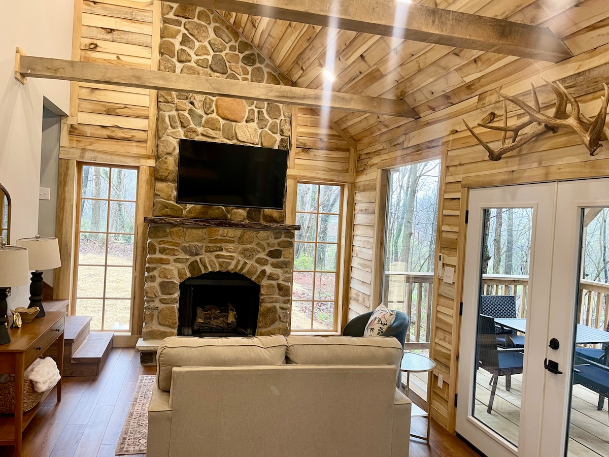 Dogtrot in Dennis Cove: your basecamp for adventure! Steps away from the Appalachian Trail, this refuge is bordered by Cherokee National Forest and Laurel Fork Creek. On property activities include a wood fired hot tub, creek access for fishing / swimming, hiking, stargazing (no light pollution here) and of course, ping pong. With a picnic and hammock area by the creek, outdoor pavilion with a large fireplace, and no TV, you are finally able to spend some quality outdoor time with your family!