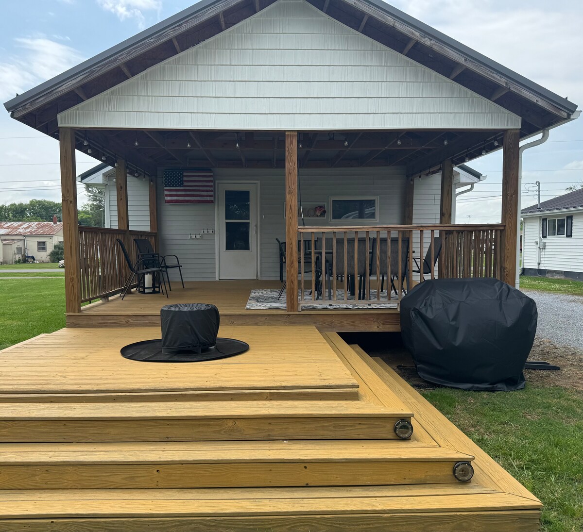 Enjoy a stylish experience at this centrally-located place. Close to downtown Elizabethton, the covered bridge, Tweetsie Trail and walking distance to river. Beautiful level lot with fire pit in a quiet neighborhood. Small newly renovated home. Cozy and cottage like. New furnishings throughout. 1 bedroom and 1 makeup room or workspace with desk and makeup mirror. Pets are allowed, limit 1 dog or cat. $50 PET FEE PER PET. Please purchase the trip insurance as these reservations are non refundable