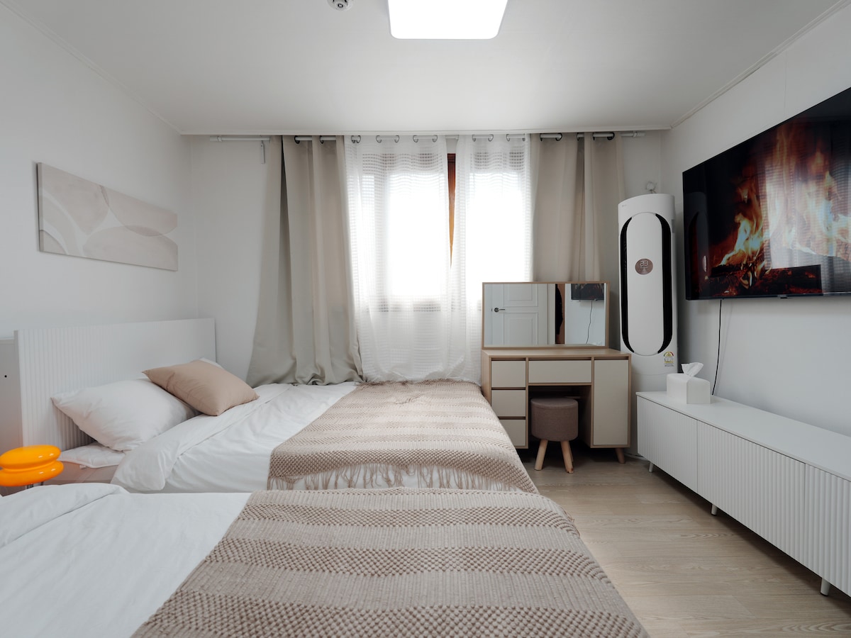 Seul Mərkəzi 2 otaqlı | 1 dəqiqəlik hava limanı avtobusu | 2 dəqiqəlik metro