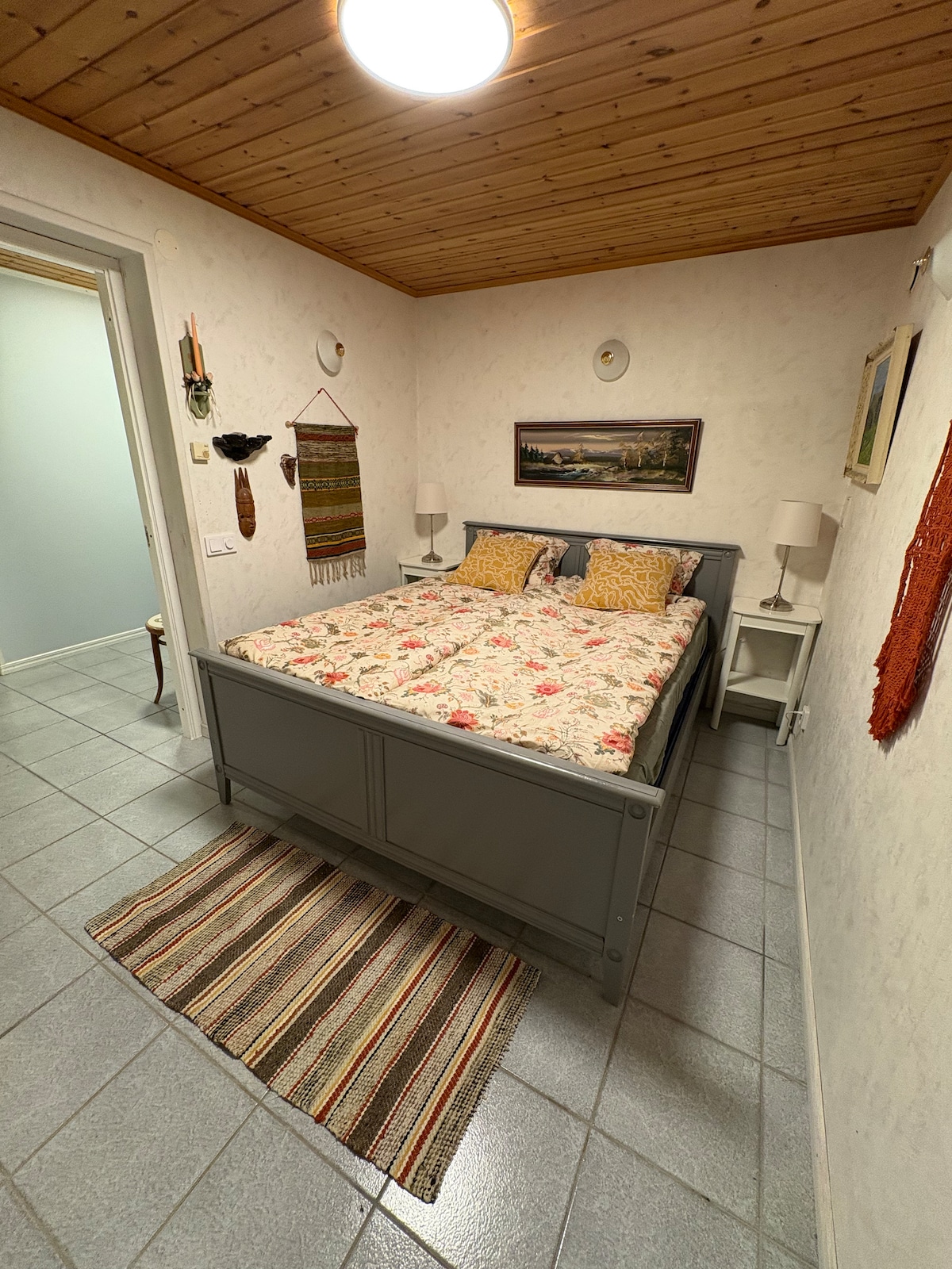 Nära privat strand till sjön Rudan. Tillgång till eka. Som att bo på landet men ändå 10 min gångväg till Pendeltåg, Haninge centrum. 15 min gångväg till Port 73. I rummet finns en säng med en extra utdragbar säng. Det finns också ett loft med en flyttbar stege där 2 personer också kan sova . Vi bäddar sängarna i rummet , men inte på loftet. Vill man använda loftet får man bädda själv.