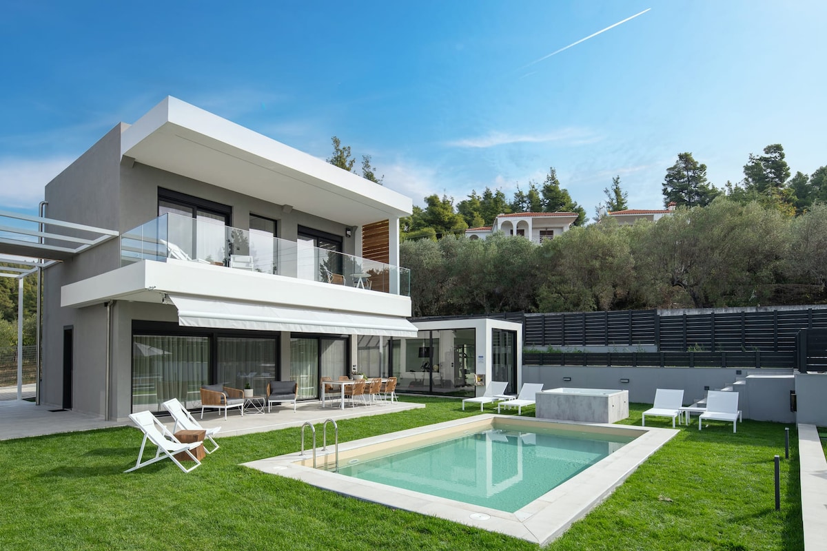 Chanioti-Chalkidikidə xüsusi hovuzu olan Lüks Villa. Üzgüçülük hovuzu qızdırılır, duzlu suyu var və yalnız evimiz üçün özəldir. İkinci mərtəbədə dənizə və Sitoniya dağına heyranedici mənzərə açılır, eləcə də zeytun ağacları olan gözəl təbiət var. Çanioti (Hanioti) kəndi və gözəl dəniz və çimərliklər 10 dəqiqəlik məsafədə və ya təxminən 900 metr hündürlükdədir. Çimərliyə daha 400 metr məsafədə. Dağlarda və dəniz kənarında gəzmək/dövrə vurmaq da mümkündür.