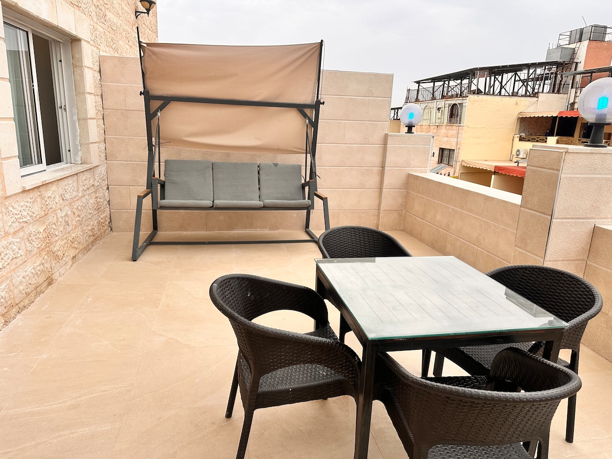 Bütün qrup bu mərkəzi yaşayış yerindən hər şeyə asanlıqla giriş imkanı əldə edəcək. Bu elanda iki yataq otağı, hamam otağı və balaca mətbəx , mikrodalğalı soba və su qızdırıcısı olan bardaq var Mənzildə açıq havada oturan, yellənən və şəhərə baxan böyük terras da var Mənzil kondisionerlidir, ikinəfərlik çarpayı və iki birnəfərlik çarpayı var. Əlavə çarpayı əlavə edə bilərik