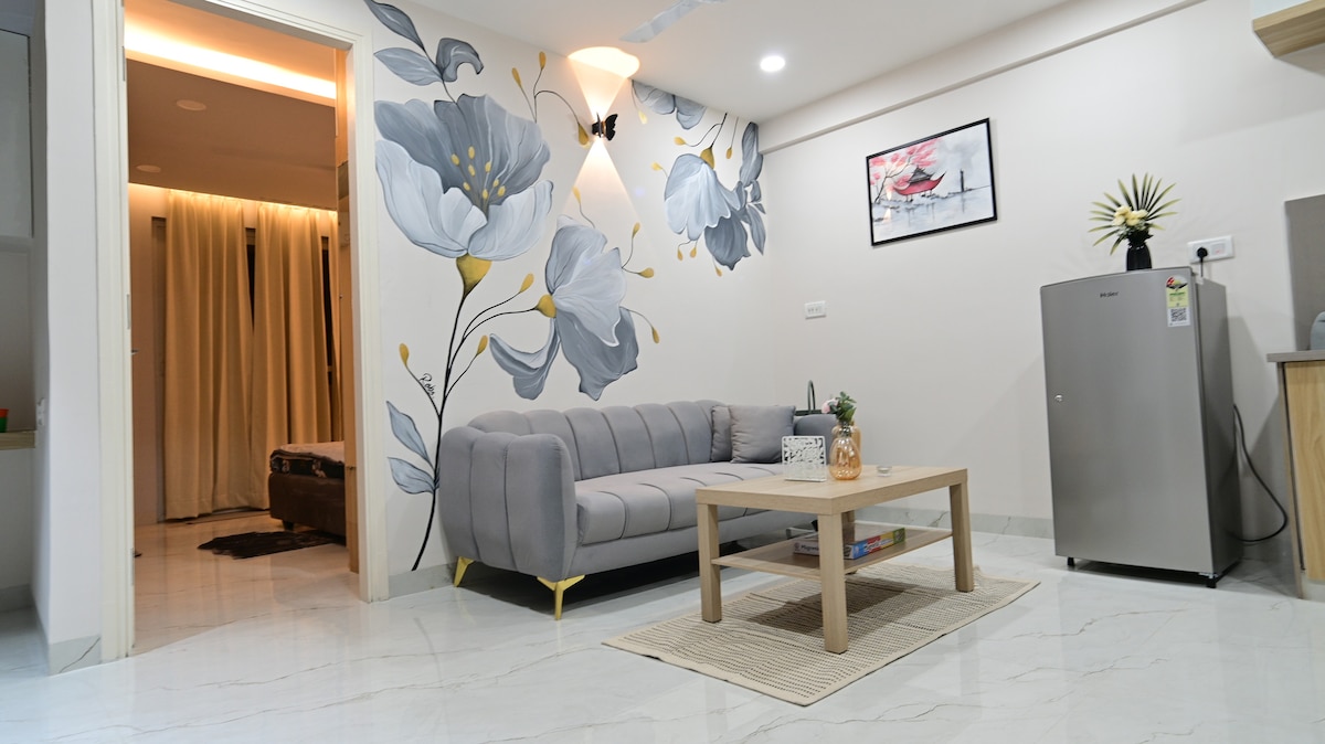 Welcome to beyond home, a very spacious Luxe 1BHK with Balcony and greenery vibes and everything you need for a pleasant stay. This home features stylish interiors with a cozy sofa setup, warm lighting, and a clean, minimal look. living room with a smart layout, a comfy bedroom, fast WiFi, 43 inch 4K smart TV, AC, a fully equipped kitchen, and a private balcony. located in a prime and peaceful residential lane, cafés, supermarkets. Ideal for both short and long stays, work trips, or couples.