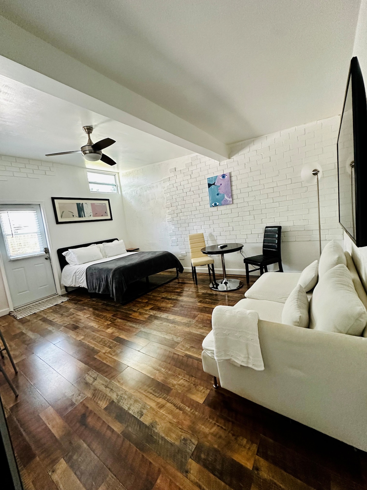 Welcome to our cozy guest suite—where comfort is personal over perfect, and full of charm you won’t find at a hotel. Guests love the thoughtful touches, eclectic decor, cloud-like bed, and the irreplaceable feeling of being at home when you’re far from home. Our home uses one central AC unit. Because Florida is warm and humid year-round, we keep the thermostat at 70°F by day and 67°F at night for proper cooling and comfort. If you prefer more warmth, two space heaters are in the suite closet.