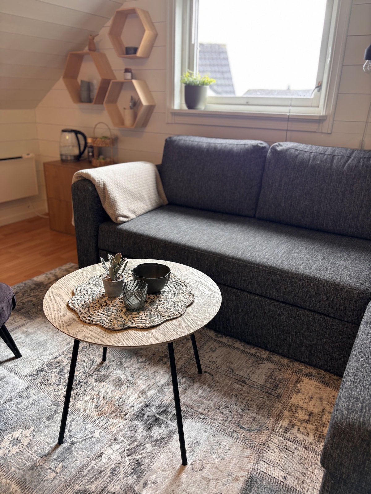 Bo i en lun og skjermet hagestue – en liten oase i grønne omgivelser på vakre Grimseid. Her våkner du til fuglesang, ro og utsikt mot sjøen. Kun 10 min fra Flesland og 5 min fra Lagunen. Egen inngang, privat terrasse og alt du trenger samlet på 20 kvm. Perfekt for par eller deg som søker stillhet nær byen. På eiendommen bor også våre vennlige geiter som gjerne hilser på 🐐