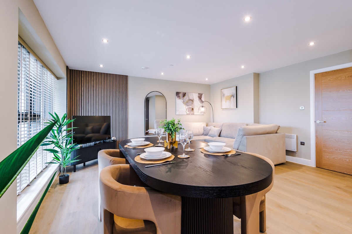 Lids şəhər mərkəzində yeni 2 yataqlı, 2 yataqlı lüks mənzil. Hər yerdə yüksək səviyyəli mebelləri olan dəbli açıq planlı mətbəx və istirahət otağı. Hər iki yataq otağı rahat çarpayıları və geniş anbarı olan genişdir; geniş sahəlidir. Müasir hamam otaqları, tam təchiz olunmuş mətbəx və ağıllı televizor. Mağazalardan, barlardan və nəqliyyatdan addımlar. Biznes və ya istirahət qonaqlamaları üçün mükəmməldir. Rahatlıq, üslub və əsas mövqedən zövq alın.
