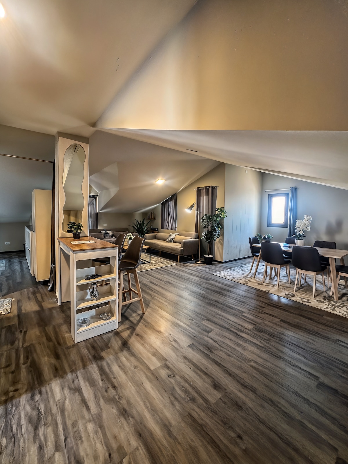 Naqqaşın mərkəzində rahat dam gəzintinizə xoş gəlmisiniz! Bu ayrıca və təhlükəsiz damlı mənzildə səhər qəhvəsi, gün batımı axşamları və ya sadəcə sakit mühit üçün mükəmməl geniş terras var. Rahatlığı nəzərə alaraq düşünülmüş şəkildə dizayn edilmiş məkan cütlüklər, tək səyahətçilər və ya kiçik ailələr üçün ideal isti və ev ab-havası təklif edir.