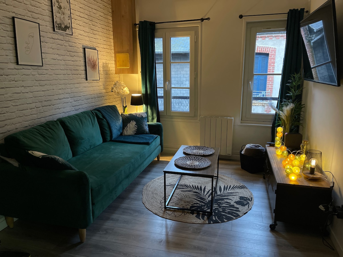 Treat yourself to an unforgettable getaway facing Honfleur’s Old Harbor! This charming studio is the only one with a real balcony where you can dine while watching the boats glide by. Queen-size bed, fibre Wi-Fi, linen and cleaning included. Free parking nearby, pets welcome. A rare gem—perfect for a romantic escape or a salty break in the very heart of town.