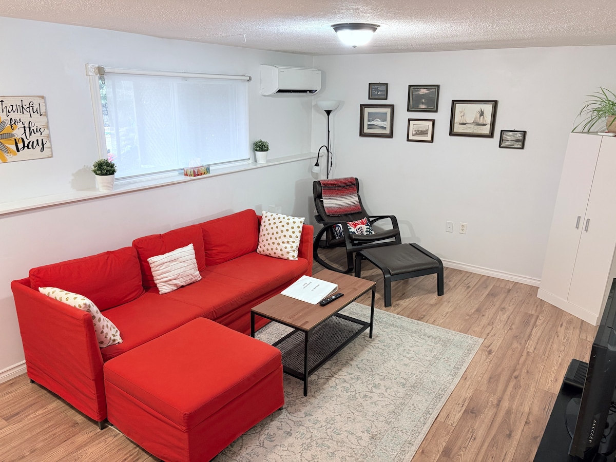 Edgewater-ə xoş gəlmisiniz. Bağ süitamız tamamilə ayrıca,ayrıca süitadır. Qonaqların ayrıca girişi var. Bağlara və gölə baxan möhtəşəm günəş doğuşlarından və peyklərdən zövq ala bilərsiniz. Göldə bir-birlərini taparkən loonların zənginə qulaq asın. Nömrədə rahat oturma otağı, yemək masası və təchiz olunmuş balaca mətbəx ( toster, mikrodalğalı soba, qəhvə presi, çaydan) var (yemək bişirmə imkanları yoxdur). Oturan otaqdan kənarda rahat yataq otağı və ayrıca hamam otağı var.