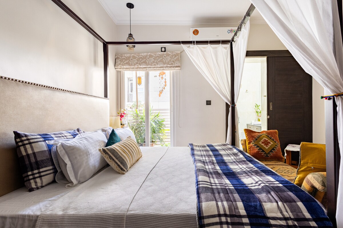 Torpaq füsunkarlığının müasir rahatlığa cavab verdiyi bir məkana daxil olun. Dinc, ailə yönümlü qapalı məhəllədə yerləşən 1 BHK mənzili yavaş yaşayış, yaradıcı ab-hava və səmimi qonaqpərvərlik üçün nəzərdə tutulub. 2-ci mərtəbədə yerləşən mənzil təbii işığa bürünüb və isti terrakot palitrası ilə dizayn edilib, interyer əl ilə işlənmiş dekorasiya, köntöy taxta teksturalar, vintaj tapıntılar və özünüzü dərhal evinizdəki kimi hiss etməyiniz üçün düşünülmüş şəkildə seçilmiş orijinal sənət əsərləri ilə doludur.