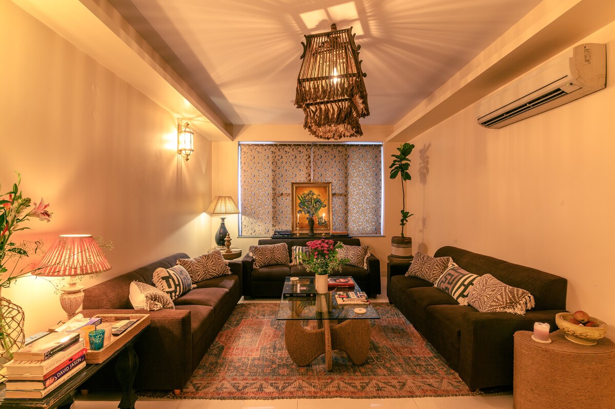 Dehlinin ən unikal Tətil Evinə xoş gəlmisiniz. Bu 3 BR Penthausda Terras ,Sulu bağ, cakuzi, açıq havada oturma yerləri , yeni Aircon, lift, 24 saat enerji ehtiyatı və Əhatə olunan avtomobil parkı var. Mərkəzdə yerləşən və Hindistan Qapısı , Pragati Maidan, Xan Marketdən bir neçə dəqiqəlik məsafədə yerləşən bu evdə xüsusi xüsusi avtomobil dayanacağı, lifli optik hi-sürətli İnternet, bütün otaqlarda ağıllı televizorlar və s. var, biz də Ev Heyvanları dostuyuq ;)