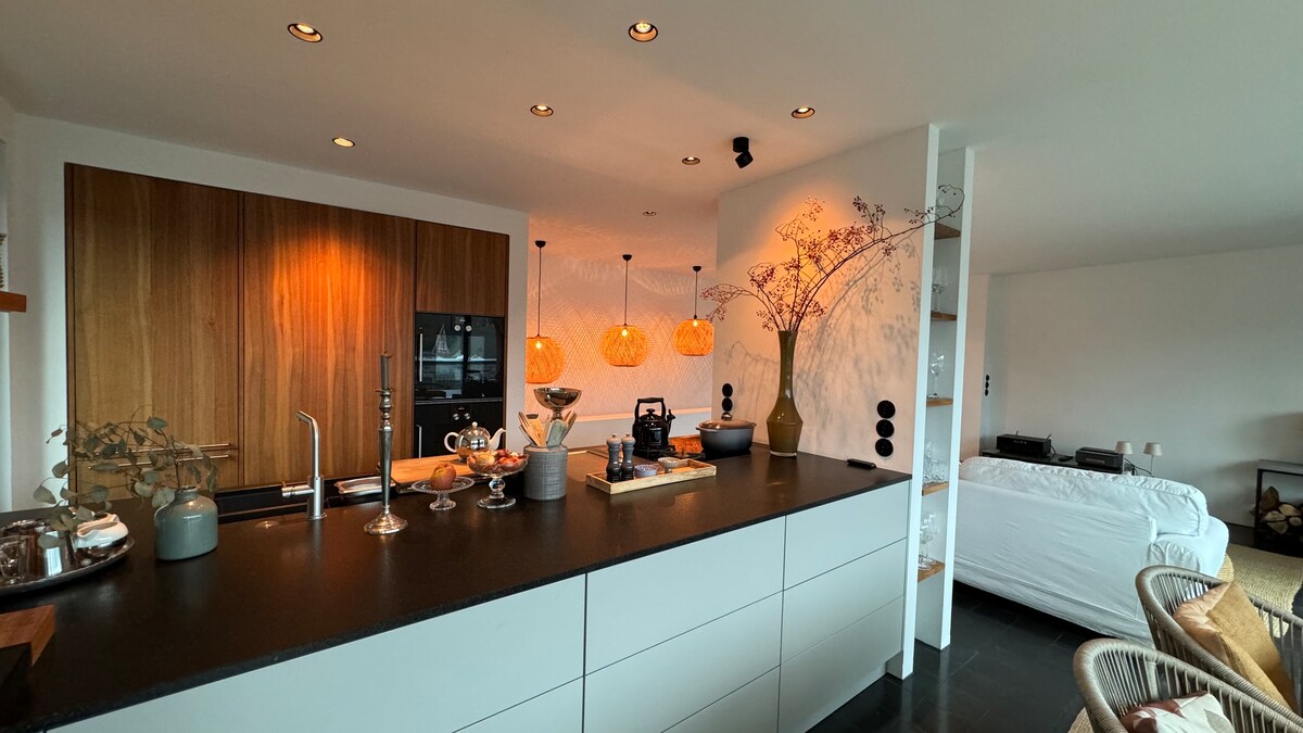 Memarın evindəki bu geniş qonaqlama yeri hər şeydən əvvəl böyük dam terrası və pulsuz asma, açıq və 360 dərəcə fırlanan buxarısı olan açıq işıqlı pilləli döşəmə ilə diqqəti cəlb edir. Pəncərənin ön tərəfi tamamilə açıla bilər. Emal edilmiş mətbəxdə Teppan ilə portafilter maşını və Bora Peşəkar Sistemi var. Ətrafdakı səs sistemi xüsusi səs təcrübəsi təmin edir. İkinci mərtəbədə üç yataq otağı və hamam otağı və açıq salon sahəsi var.