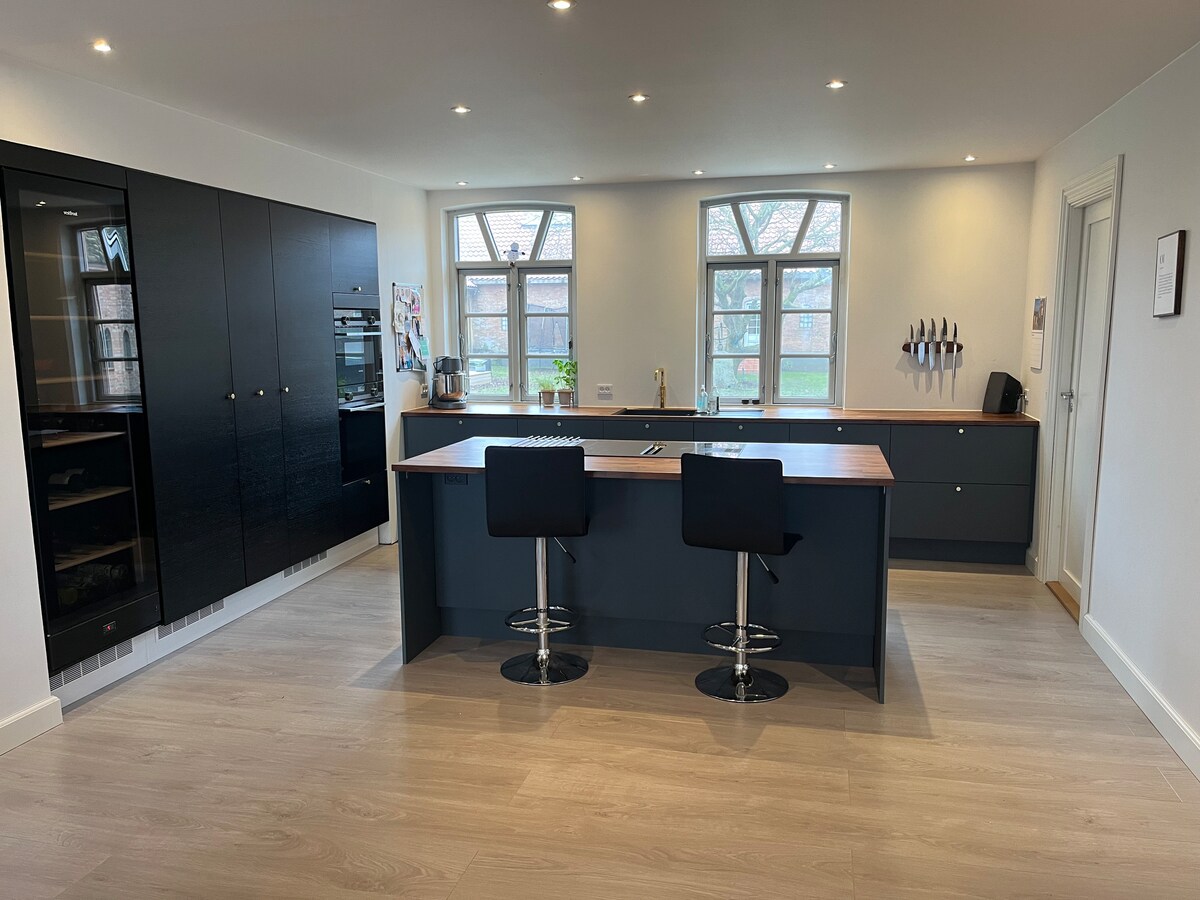 Holiday apartment made in the old farmhouse on a disused farm between Rønne and Hasle. Lovely courtyard that can be closed off so that children can play safely. Several table and bench sets have been set up for free use. You can experience lots of small birds in the garden and occasionally also deer and hares. Lovely large partial wild garden with fruit trees, cherries, apples and pears, which you are welcome to eat. Ca 2 km. to small cozy beach, forest and lakes. I live on the property myself.