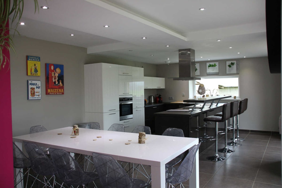 D'une capacité de 15/16 couchages, super équipé pour vous sentir comme chez vous, notre gîte est idéal pour se retrouver en famille ou entre amis, entre adultes ou avec des enfants (mais pas de grosses fêtes ni de soirées). Les pièces de vie sont vraiment spacieuses et le gîte est conçu et équipé pour accueillir de grands groupes. Possibilité de prendre l'option "sauna". Gîte classé 3 étoiles. Nombreuses activités "nature" ou "culture" à proximité. Accès rapide par la Nationale 4 à 13 km.