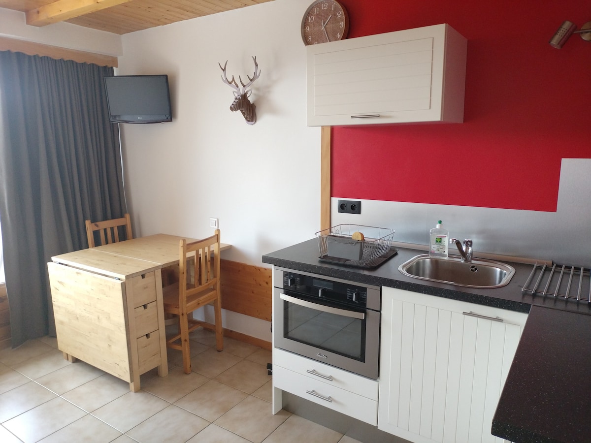 tudio kabin bütün rahatlıq 4 nəfər aşağı stansiya Les Saisies. Mətbəx, keramika hob, divan-kreslo, balkon ilə təchiz olunmuş böyük qonaq otağı, cənuba baxan balkon. Girişdə 2 çarpayı (yeni döşəklər), vanna otağı. Beaufortain massivinin gözəl mənzərəsi. Yataq örtükləri və hamam örtükləri təmin edilir. Gəlin, təbiət qoynunda sakitlik və istirahət anından zövq alın! Müxtəlif açıq hava idman növlərinə giriş: dağda velosiped sürmək və ya VAE, yürüyüş, cığır, üzgüçülük hovuzu, ağac dırmanma...