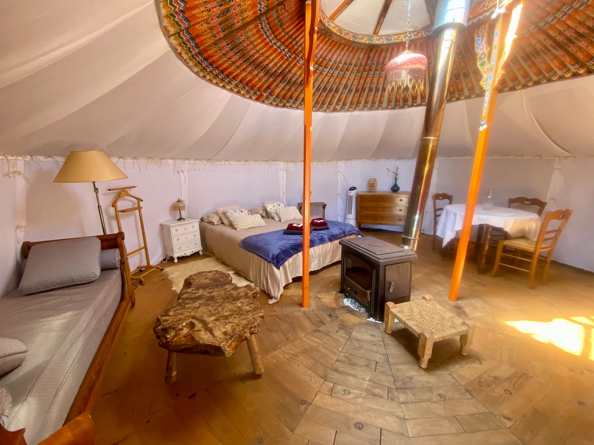 Venez vous reconnecter à la pleine nature en profitant de notre yourte traditionnelle mongole. En supplément, un bain nordique vous attend à 1000 m d'altitude avec vue sur les montagnes (55€). Petit déjeuner compris. Possibilité de table d'hôte en partie certifiée AB. Nous nous adaptons à tous les régimes. Linge de lit et de toilette fournis. Parking voiture à 200 m en contrebas du lieu. Privilégiez le sac à dos pour y accéder. En cas de besoin nous irons vous chercher en 4x4.