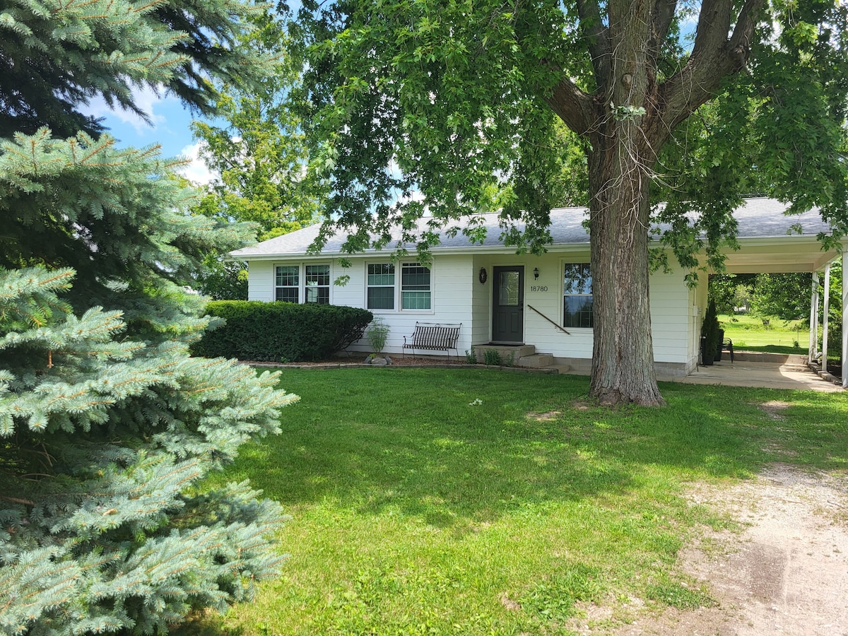 Escape to your private country retreat! This beautifully renovated 1-bed, 1-bath home offers modern comfort backed by scenic cornfields. Comfortably sleeps 2-4 guests. Features a fully equipped kitchen, dedicated workspace, and smart home tech. Enjoy serene tranquility just a short drive from downtown Peoria. Perfect for a peaceful getaway or a remote work haven.