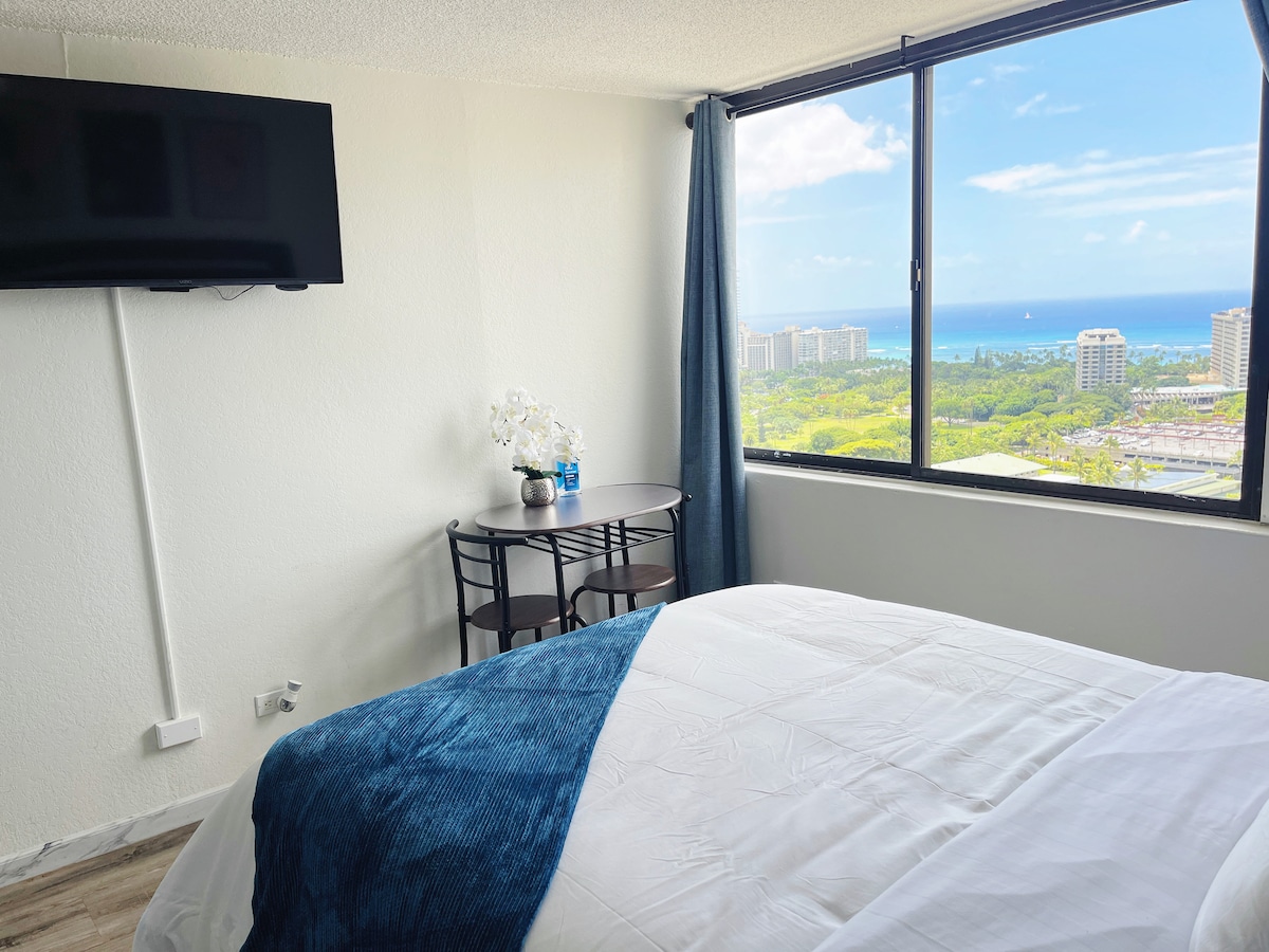 Cozy studio with amazing view! FREE PARKING on premises- covered assigned stall, Unlimited In and out access. Convenient location in Waikiki. Walk to Waikiki beach, Restaurants & Ala Moana Shopping Center Secure building with 24 hr security/ building staff Kitchenette with small stove, mini fridge, and microwave Access to Amenity Floor on the 5F: *Laundry facility (Fee $1.50 credit card) 7am-10:50pm *Pool 9am-9pm Must have Review on Airbnb to book Tax and all fee included